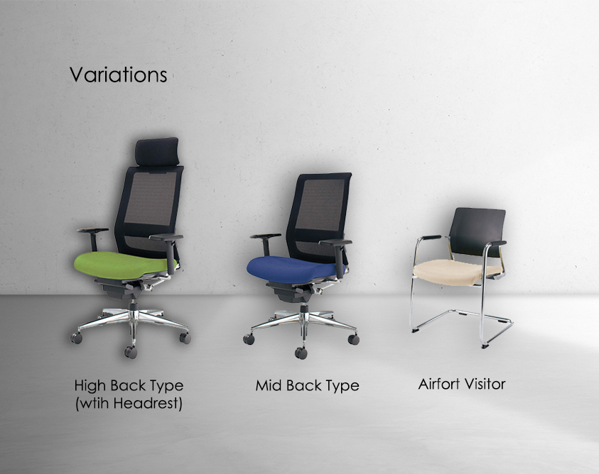 Created and Designed by KOKUYO in-house designer; Kazutaka Oki. AIRFORT is packed with innovative design with advanced functionality. The prominent aspect of the chair is the Air-controlled lumbar support and heat dispersing seat cushioning. These functions pave the way for a new era of comfort and style.