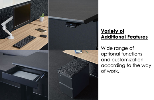 Change the height depending on the work. Change your mood by standing and sitting to improve your concentration. If you make good use of these changes, your work will be faster. Also, if you stand and have a wider view, you can actively communicate with your friends.